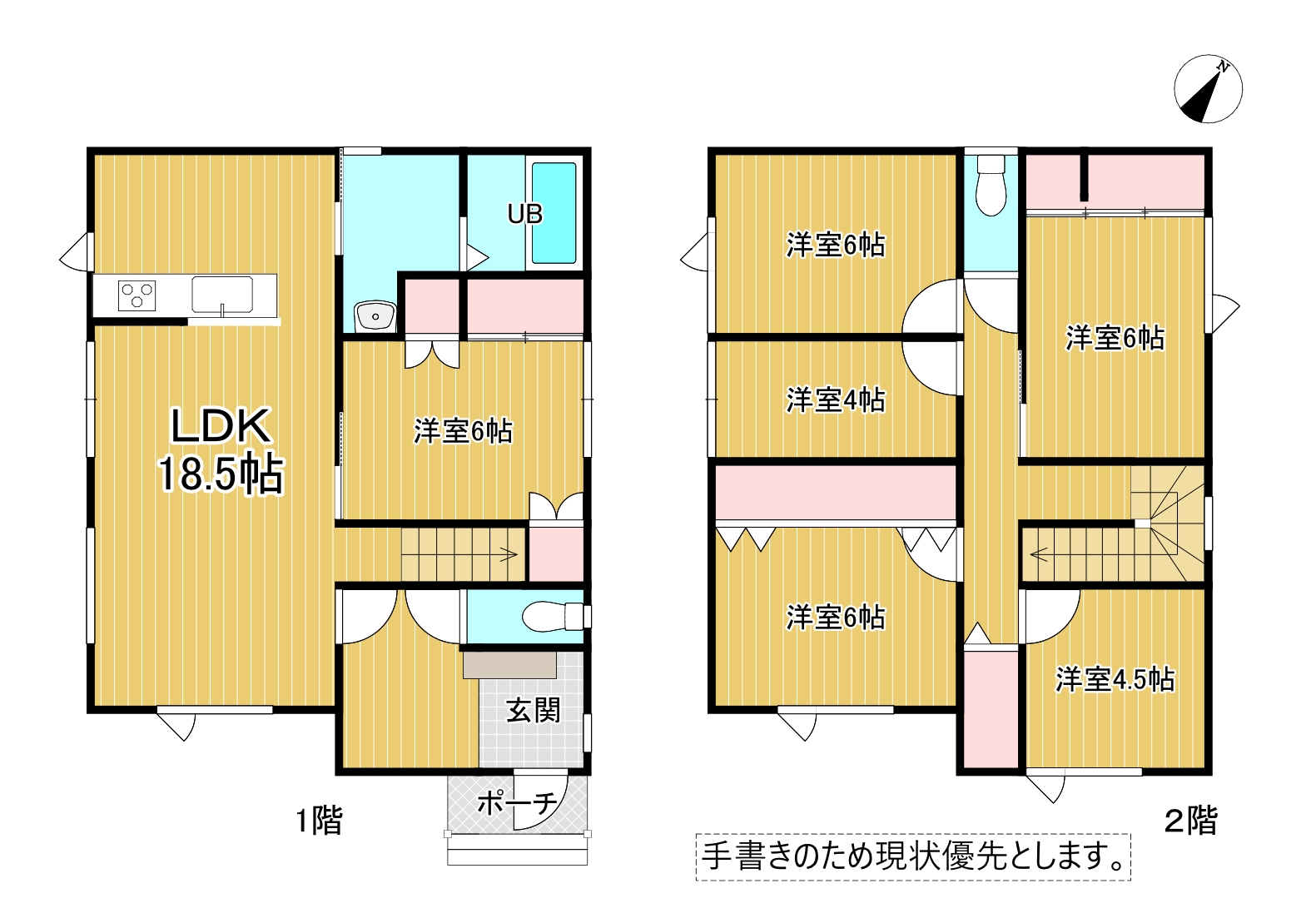 6LDK 1階:LDK18.5帖 洋室6帖 / 2階:洋室6帖 洋室6帖 洋室6帖 洋室4.5帖 洋室4帖